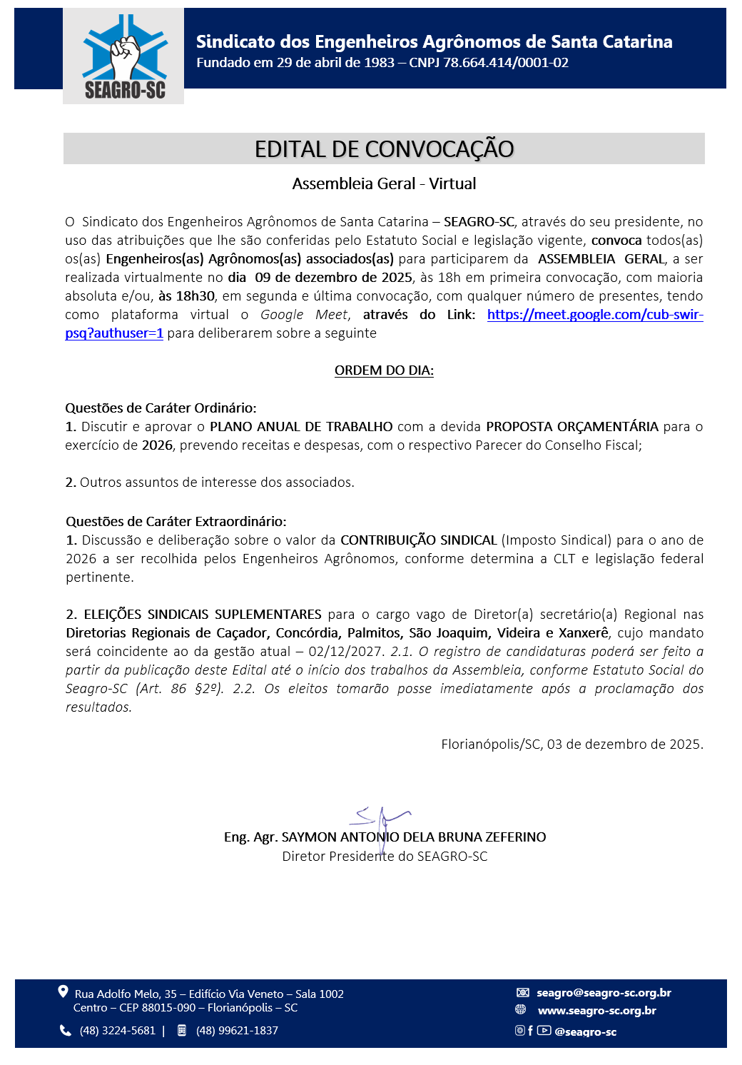 Desde 29 de abril de 1983 defendendo, representando, fortalecendo e valorizando a categoria